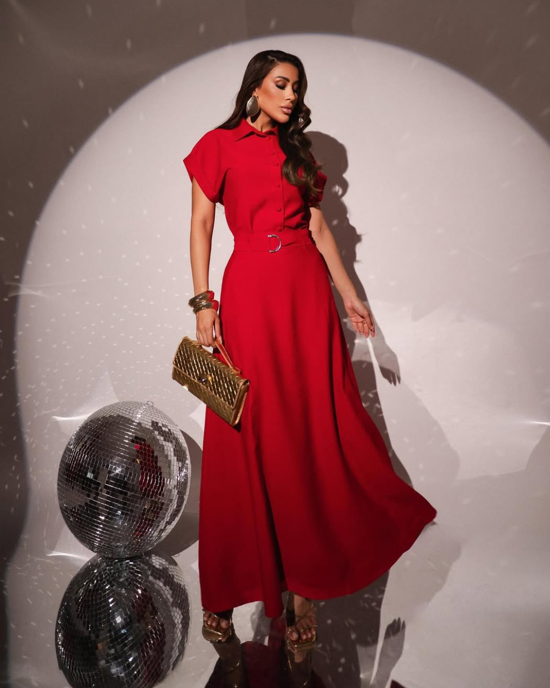 Modelagem chemise clássica: Corte atemporal que transmite elegância, com estrutura que alonga a silhueta e garante um visual equilibrado e sofisticado.